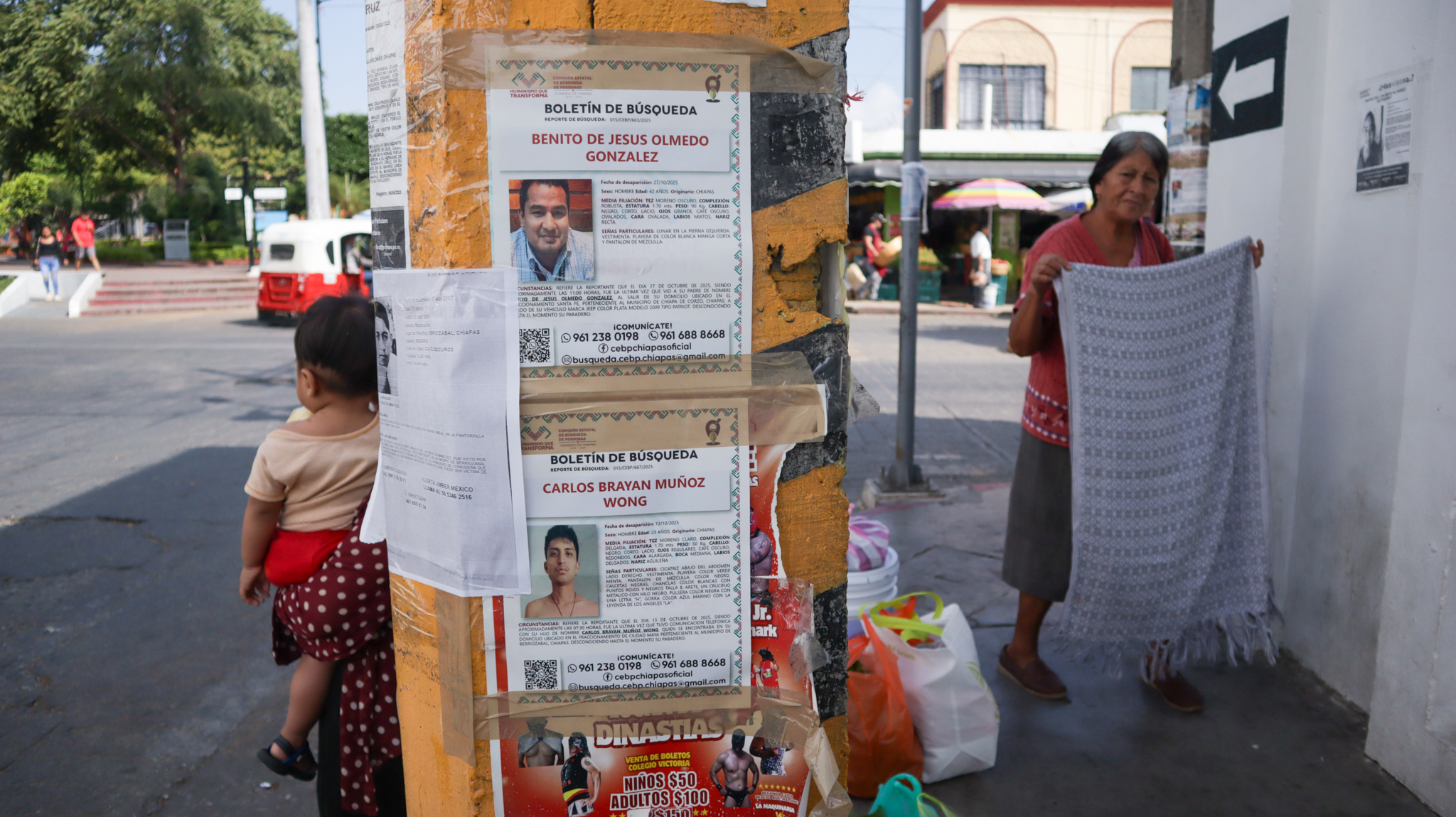 Por ejemplo, la ficha de Benito de Jesús Olmedo González, desaparecido en Chiapa de Corzo, a una hora de distancia, el 27 de octubre de 2025, fue pegada por la Comisión Estatal de Búsqueda de Personas, y la de Carlos Brayan Muñoz Wong, desaparecido unos días antes, el 13 de octubre, en Berriózabal, fue su madre quien la colocó.