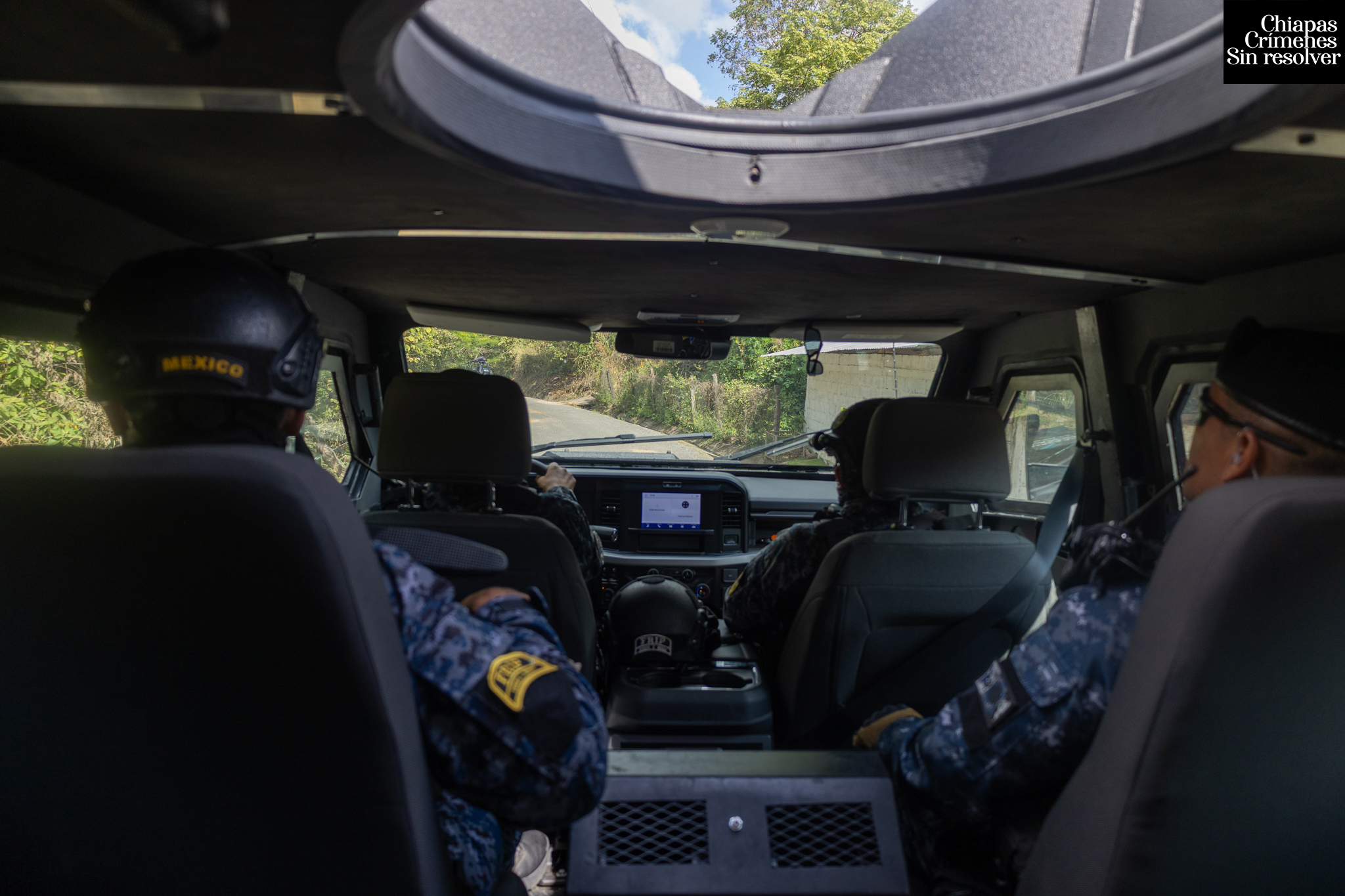 Santa Teresa Llano Grande.-En la Sierra de Chiapas, a unos cuantos pasos de la frontera entre México y Guatemala un rinoceronte blindado permanece estacionado frente a una base móvil. Su estructura gris está reforzada con una cubierta antibalas, y es conocido como Kanan —“guardián” en maya—, estos equipos buscan controlar este punto al que llegamos, el más peligroso de Chiapas.